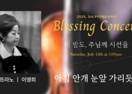 http://pyongkang.com/wp-content/uploads/2025/07/3.jpg7201280pyongkanghttp://pyongkang.com/wp-content/uploads/2022/08/평강로고-3-1030x683.jpgpyongkang2025-07-31 14:47:402025-07-31 14:47:40[제3회 평강 블레싱 콘서트]소프라노 이영희 집사님이 부른 “아침 안개 눈앞 가리듯”그리스도 안에서 새롭게 열리는 은혜의 아침, 마음의 짙은 안개를 걷어내시는 주님의 사랑을 찬양